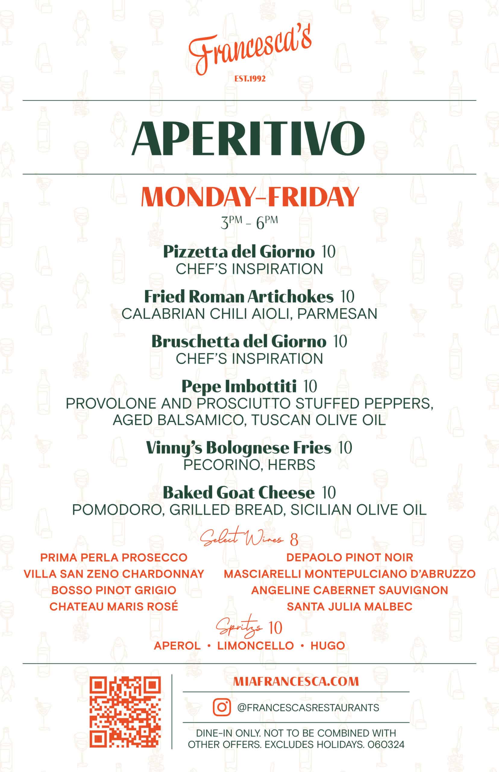 ounded in 1992 by Restaurateur Scott Harris, Francesca’s Restaurants Group has grown from a small, welcoming Italian restaurant on Chicago’s North Clark Street. Based in Chicago, Francesca’s Restaurant Group currently owns and operates 20 Francesca’s Restaurants, five Davanti Enoteca, five Glazed and Infused locations, Disotto and Fat Rosie's Taco & Tequila Bar. The concepts offer handwritten menus of classic Italian favorites in an ambiance of sophisticated comfort at Francesca’s Restaurants; a neighborhood wine bar and restaurant with contemporary takes on rustic Italian cuisine at Davanti Enoteca; and a classic American, artisan doughnut shop experience at Glazed and Infused. Across all concepts, the multi-unit restaurant group maintains its commitment to the original restaurant’s founding philosophy of Italian hospitality, where simple food with quality ingredients and thoughtful service make a meal.